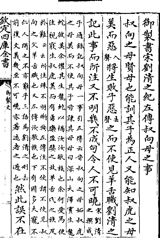 御制书宋刘清之纪左傅叔向母之事叔向之母贤母也能训其子为正人又能知叔虎之母