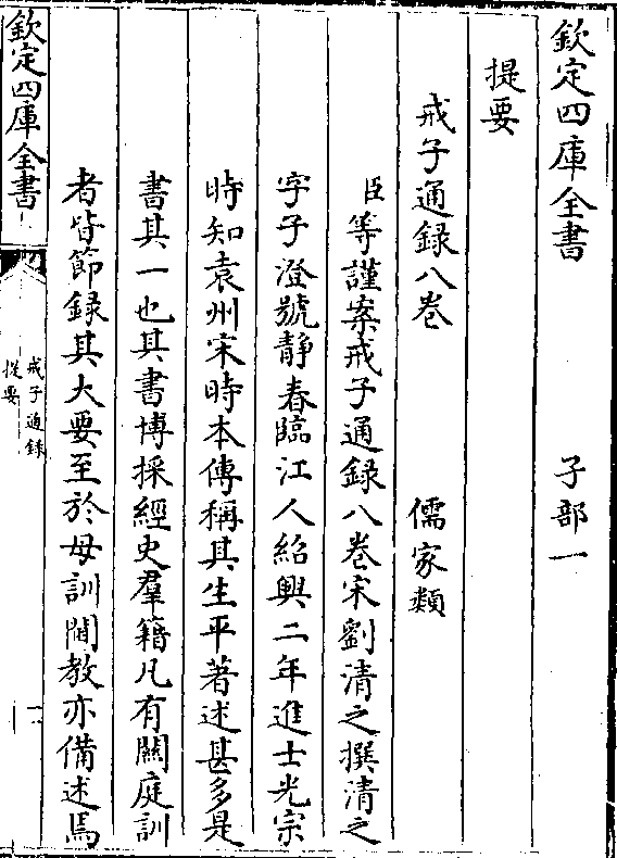 (臣/)等谨案戒子通录八卷宋刘清之撰清之