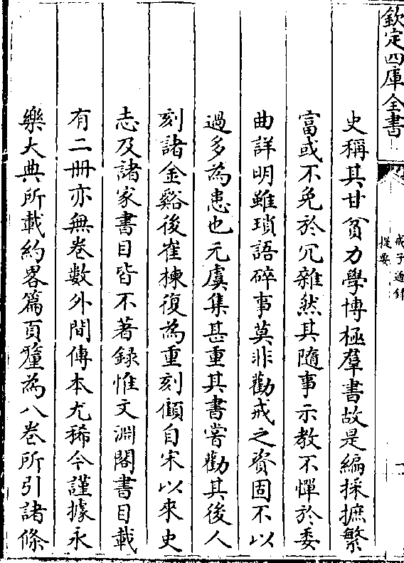 史称其甘贫力学博极群书故是编采摭繁富或不免于冗杂然其随事示教不惮于委