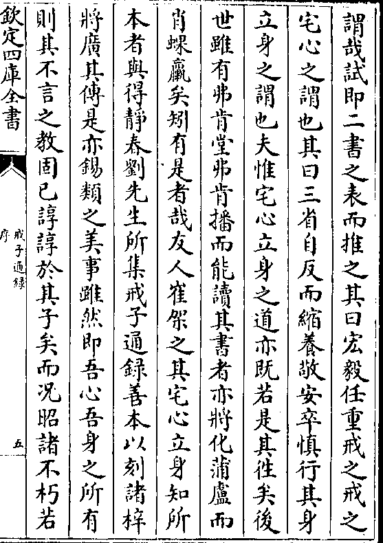 谓哉试即二书之表而推之其曰宏毅任重戒之戒之宅心之谓也其曰三省自反而缩养敬安卒慎行其身