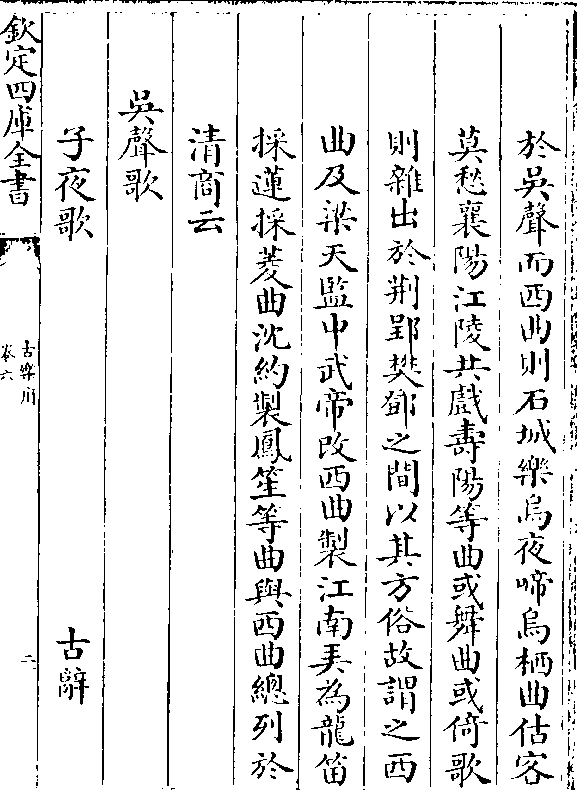 于吴声而西曲则石城乐乌夜啼乌栖曲估客莫愁襄阳江陵共戏寿阳等曲或舞曲或倚歌
