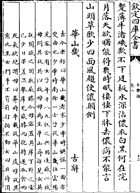 (古今乐录曰华山畿者宋少帝时懊恼一曲亦/变曲也少帝时南徐一士子从华山畿往云阳)