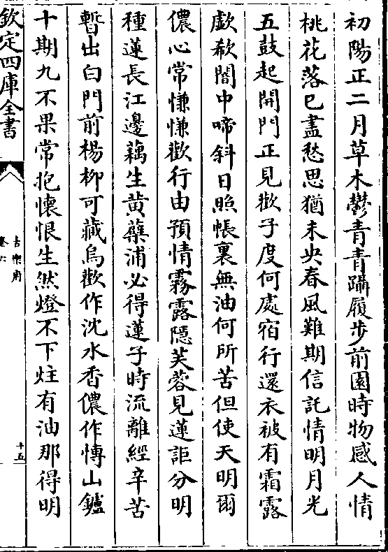 初阳正二月草木郁青青蹑履步前园时物感人情桃花落巳尽愁思犹未央春风难期信托情明月光