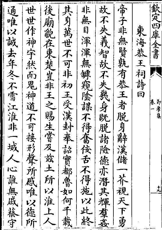 东海恭王祠诗曰帝子非无贤孰有恭王者脱身辞汉储一芥视天下勇