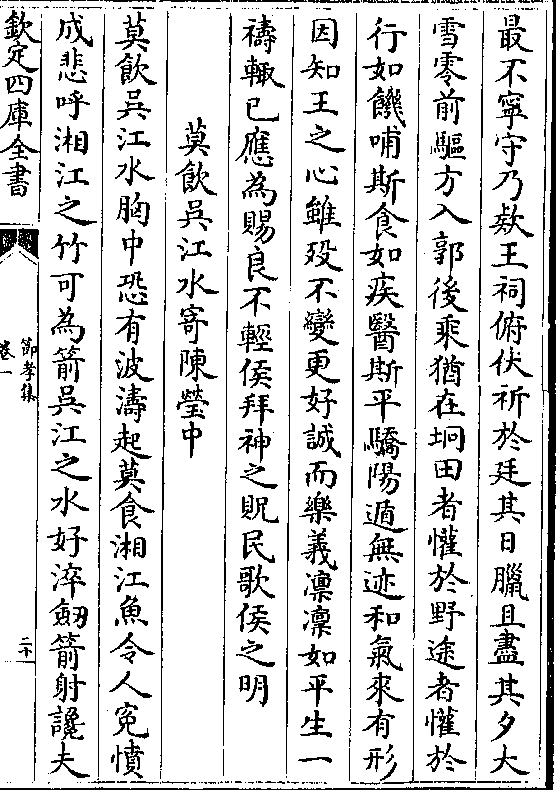 以身蔽能辨早人心自是悦而服不顾四肢与肝脑苻坚之师号百万一战而北若摧槁我吟此篇不足录却