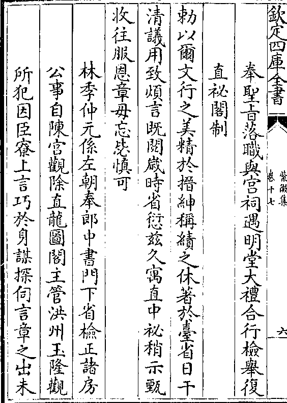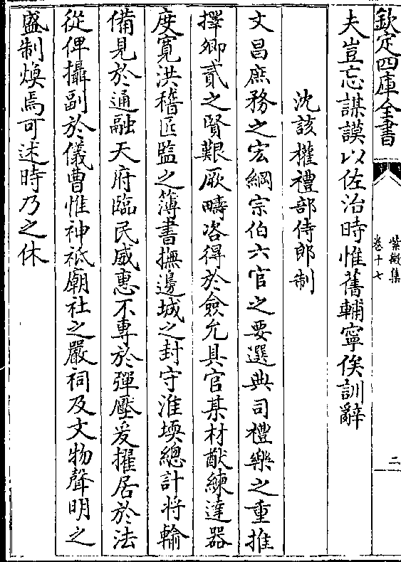 夫岂忘谋谟以佐治时惟旧辅宁俟训辞沈该权礼部侍郎制