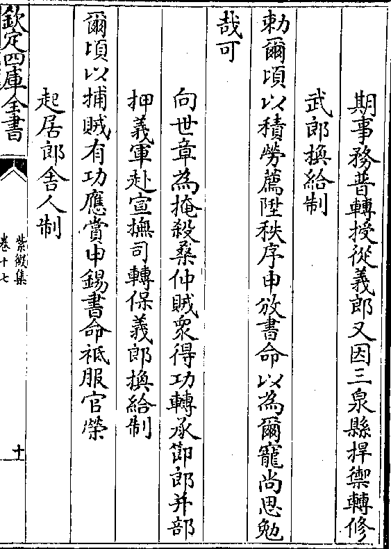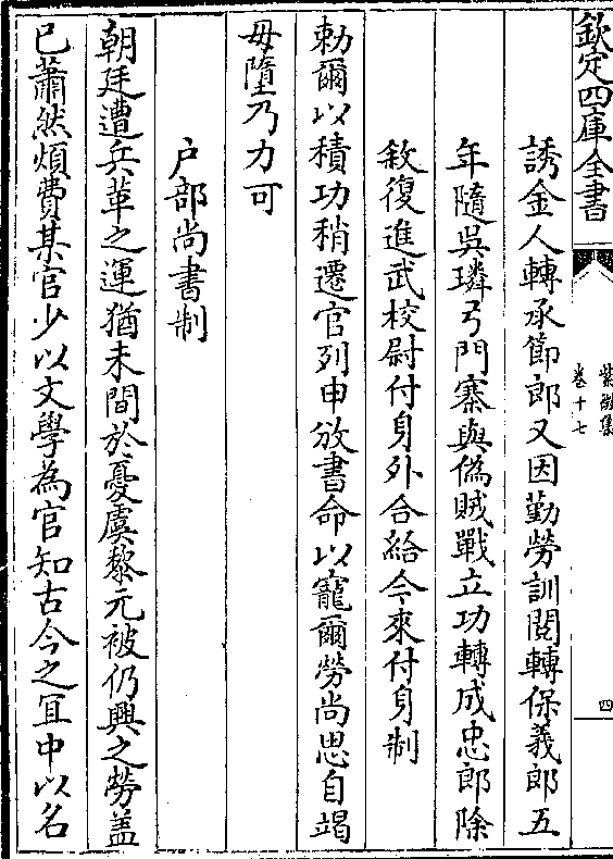 敕尔以积功稍迁官列申攽书命以宠尔劳尚思自竭