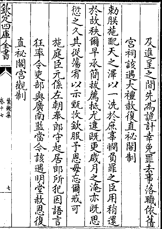 及进呈之间先为诡计幸免罪去事落职依旧宫祠该遇大礼赦复直秘阁制