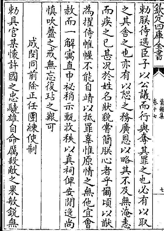 敕朕待遇臣子以公议而行与夺其罪之也必有以取之其舍之也亦有以恕之务广恩以略其不及无淹恚