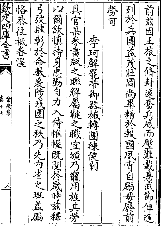 弓韬肆彰于命数爰陟戎团之秩乃先内省之班益励