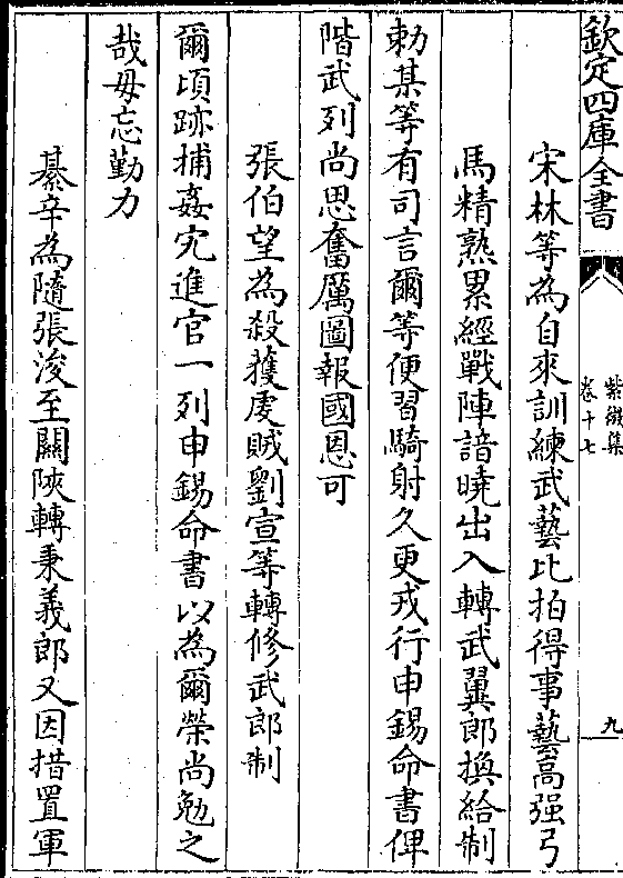 宋林等为自来训练武艺比拍得事艺高强弓马精熟累经战阵谙晓出入转武翼郎换给制
