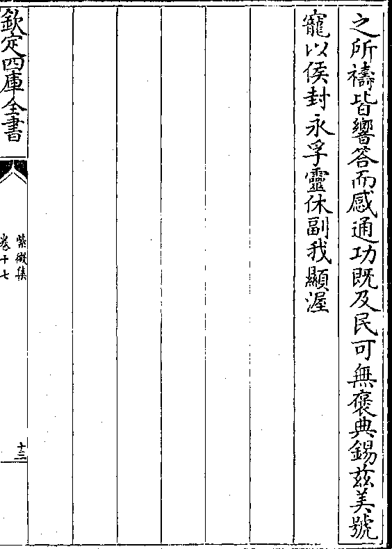 之所祷皆响答而感通功既及民可无褒典锡兹美号宠以侯封永孚灵休副我显渥