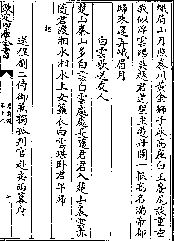 与人万里长相随黄鹤楼前月华白此中忽见峨眉客