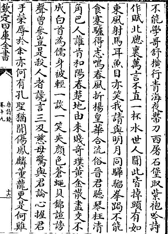 滞东鲁沈弟欲行凝弟留孤飞一雁秦云秋坐来黄叶落四五北斗已挂西城楼丝桐感人弦亦绝满堂送君