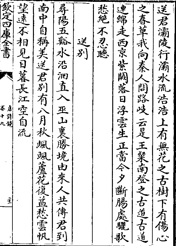送君灞陵行灞水流浩浩上有无花之古树下有伤心之春草我向秦人问路岐云是王粲南登之古道古道