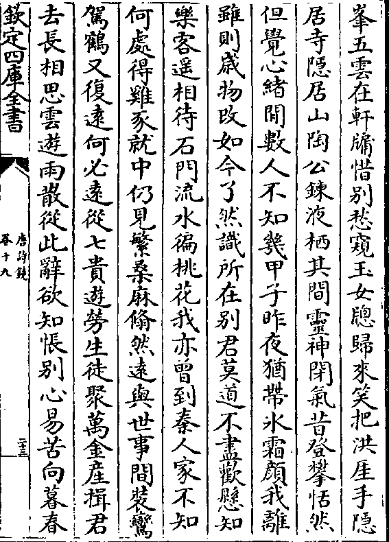峰五云在轩牖惜别愁窥玉女窗归来笑把洪厓手隐居寺隐居山陶公鍊液栖其间灵神闭气昔登攀恬然