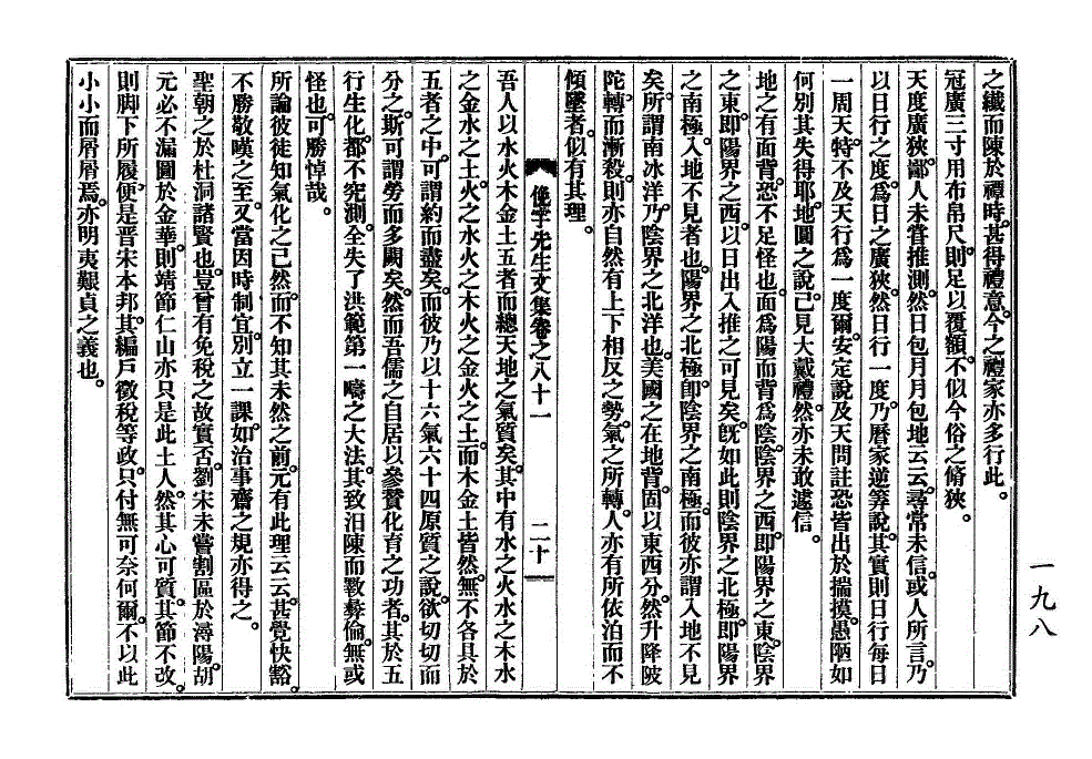 吾人以水火木金土五者而总天地之气质矣。其中有水之火水之木水之金水之土。火之水火之木火之金火之土。而木金土皆然。无不各具于五者之中。可谓约而尽矣。而彼乃以十六气六十四原质之说。欲切切而分之。斯可谓劳而多阙矣。然而吾儒之自居以参赞化育之功者。其于五行生化。都不究测。全失了洪范第一畴之大法。其致汩陈而斁彝伦。无或怪也。可胜悼哉。