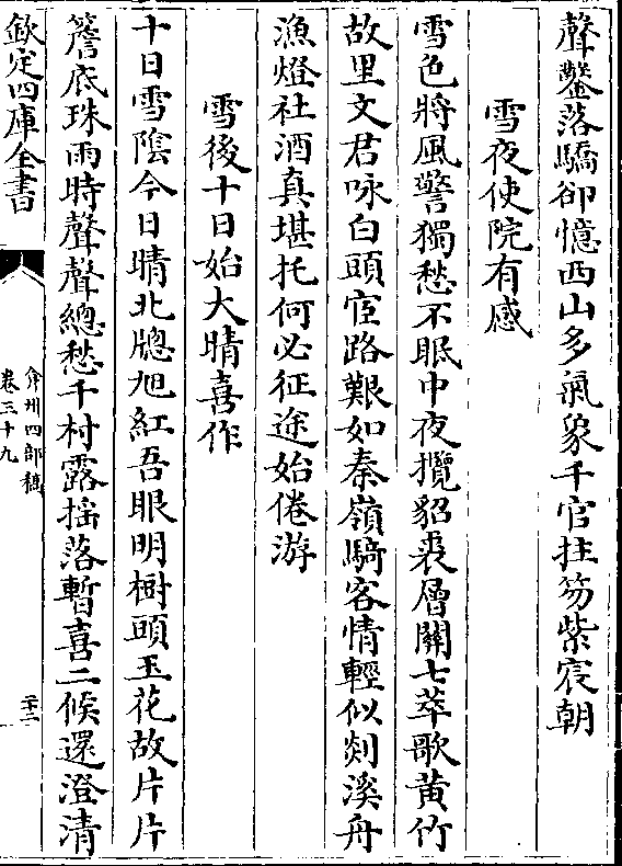 声凿落骄却忆西山多气象千官拄笏紫宸朝雪夜使院有感