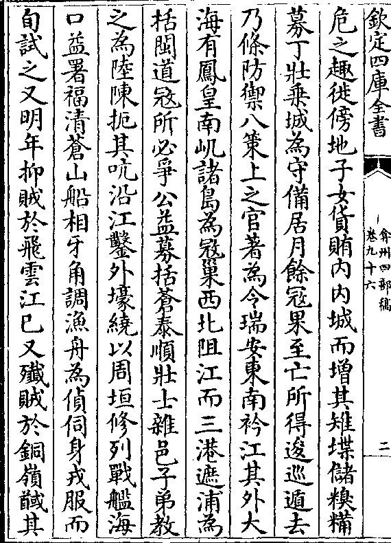 乃条防御八策上之官著为令瑞安东南衿江其外大