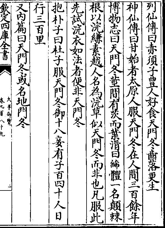 列仙传曰赤须子礼人好食天门冬齿落更生神仙传曰甘始者太原人服天门冬在人间三百馀年