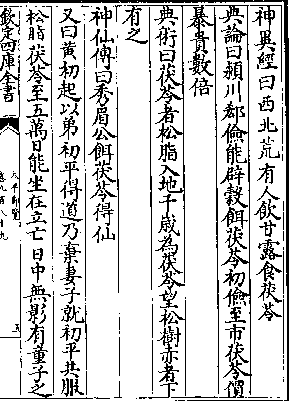 神仙传曰秀眉公饵茯苓得仙