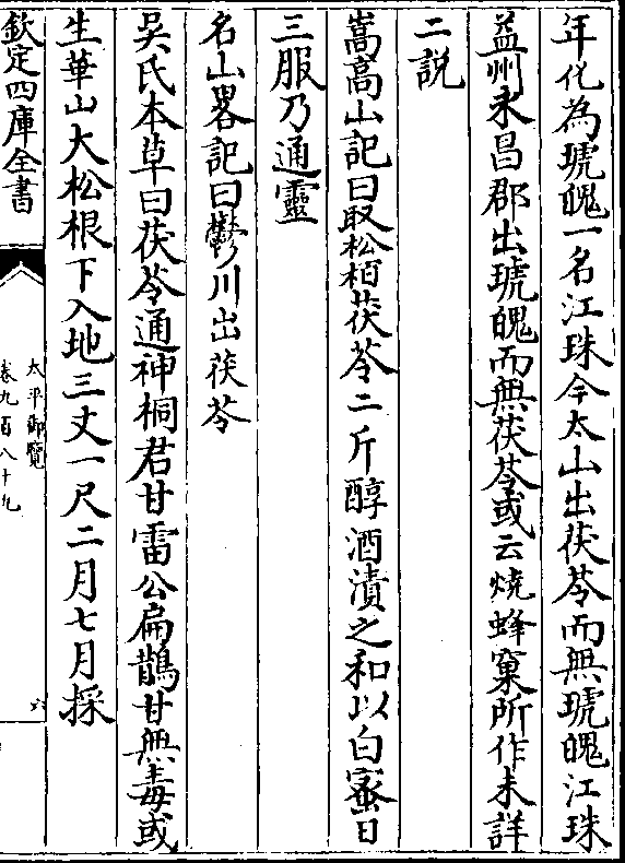 尺得矣茯苓者千岁松根食之不死齐书曰陶弘景永明中上表辞禄许之赐以东帛敕所