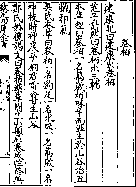 范子计然曰卷柏出三辅