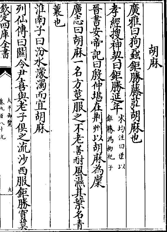 胡麻孝经搜神契曰钜胜延年(宋均注曰世以/钜胜为枸把子)