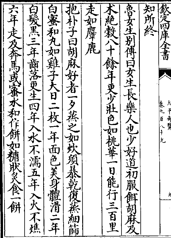 知所终鲁女生别传曰女生长乐人也少好道初服饵胡麻及