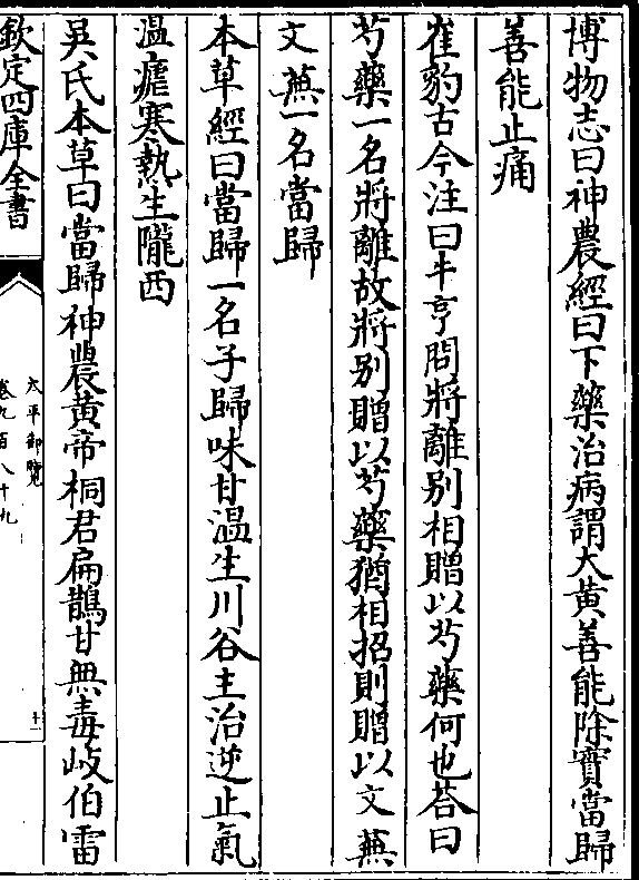 博物志曰神农经曰下药治病谓大黄善能除实当归善能止痛