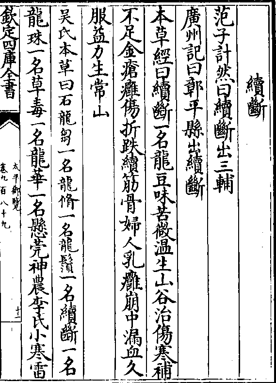 本草经曰续断一名龙豆味苦微温生山谷治伤寒补