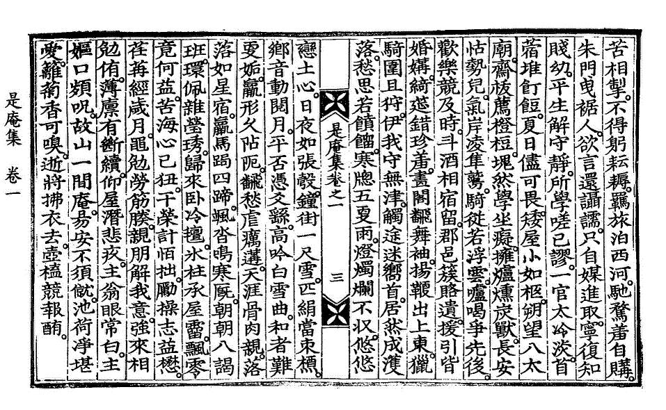 巘。快爽洗尘陋。遇兴辄吟哦。转觉奇观富。栖栖一邮丞。掣务恒奔走。吏卒傲官长。罪戾难容宥。侦候舞奸黠。百计期欲售。狡猾宜屏斥。尪瘁当扶祐。低颜奉上官。有时逢呵诟。羁怀郁未纾。有如鱼在甃。酸寒已次骨。静思心怐愗。适会移近邮。关外少知旧。此地好山水。周览忭可又。林间隐虎豹。泓底潜螭嘼。(音嗅蛟也)前年谷不熟。丁壮半为寇。犁童与白首。号呼望赒救。晨夕满邮庭。仰哺同雏鷇。生灵困如此。作图谁能奏。瓶罂欠粒粟。所赖惟转贸。时乘驲骑出。饿羸频邂逅。伤心更惨目。闷默回颈脰。乡关隔千里。望眼常昏瞀。南山有桂树。樛枝雨滴溜。旅泊久蹭蹬。初服何当复。诚愿罢官去。琴棋娱左右。一朝谢簪绂。恍若脱介冑。藜羹等甘蔗。肉食犹秽臭。田园乐事多。宿愿今始副。临水斫鲂鲤。入山伴鼯鼬。优游迫晚景。对镜面已皱。庭中客稀到。鸡鸭相刺斗。时闻溪路侧。磔磔雉朝雊。景物动幽兴。杂沓来相辏。跌宕少拘束。啸咏多步骤。百体保无恙。造物若相佑。三冬气凝冱。燠室如爇灸。闭门读书史。潜心究篆籀。此乐讵几何。朅来京城逗。桎梏是庵先生文集卷之一 第 143H 页
