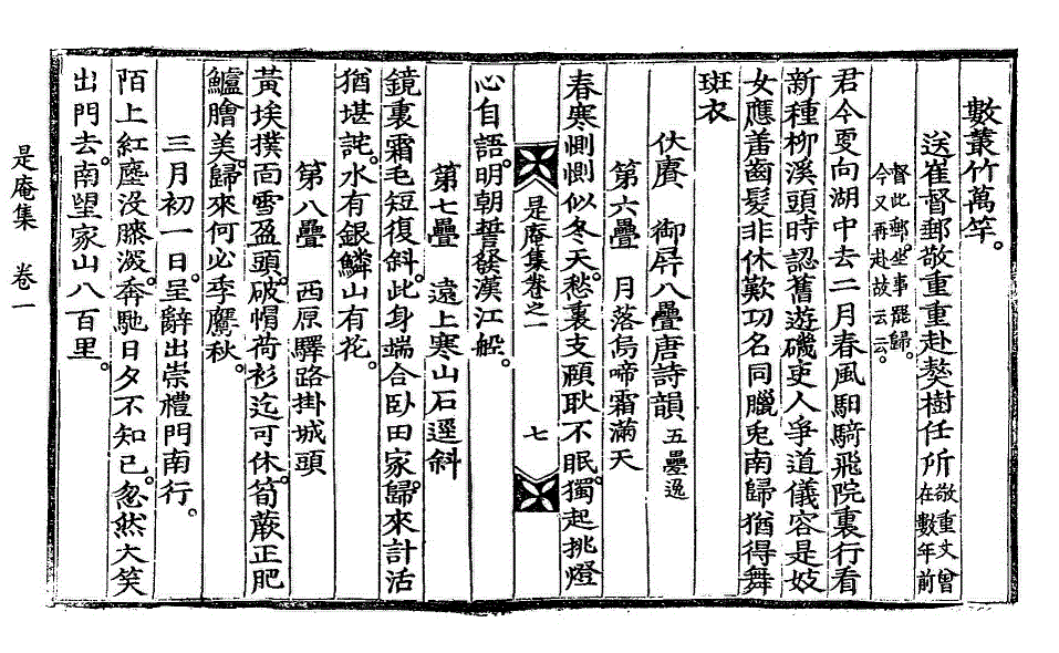 家山南望几时还。那个酸寒足万般。乡梦缤纷逢友稳。客愁撩乱入诗班。眼前须发千茎雪。身上功名五品官。安得飘然尘臼外。快登江阁把渔竿。