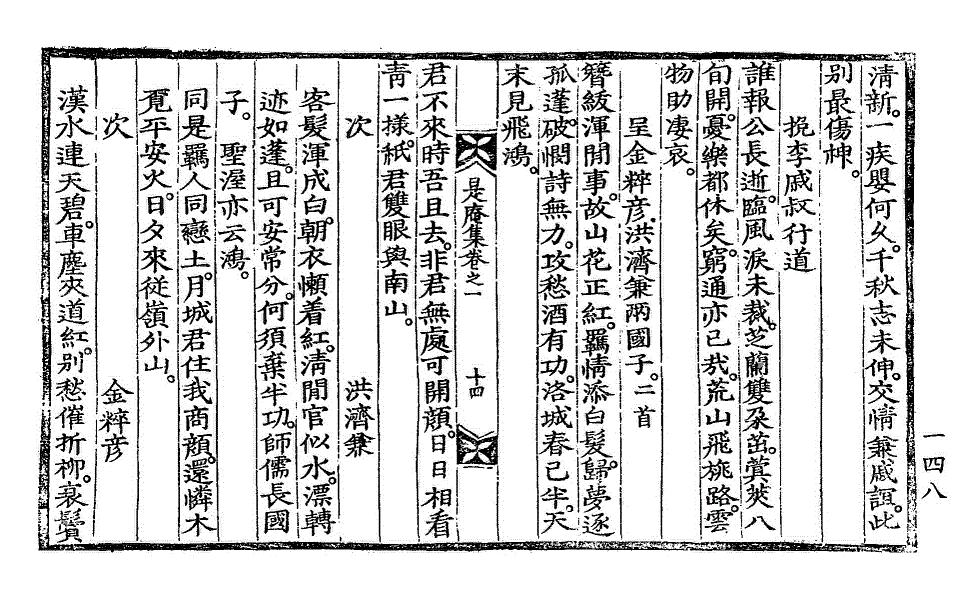 齿爵虽然有不同。断金心事二人同。相看脉脉销魂事。岭外家山又是同。(济兼之于吾。以齿则长一纪。以爵则下一级。戏语之间。常以此相