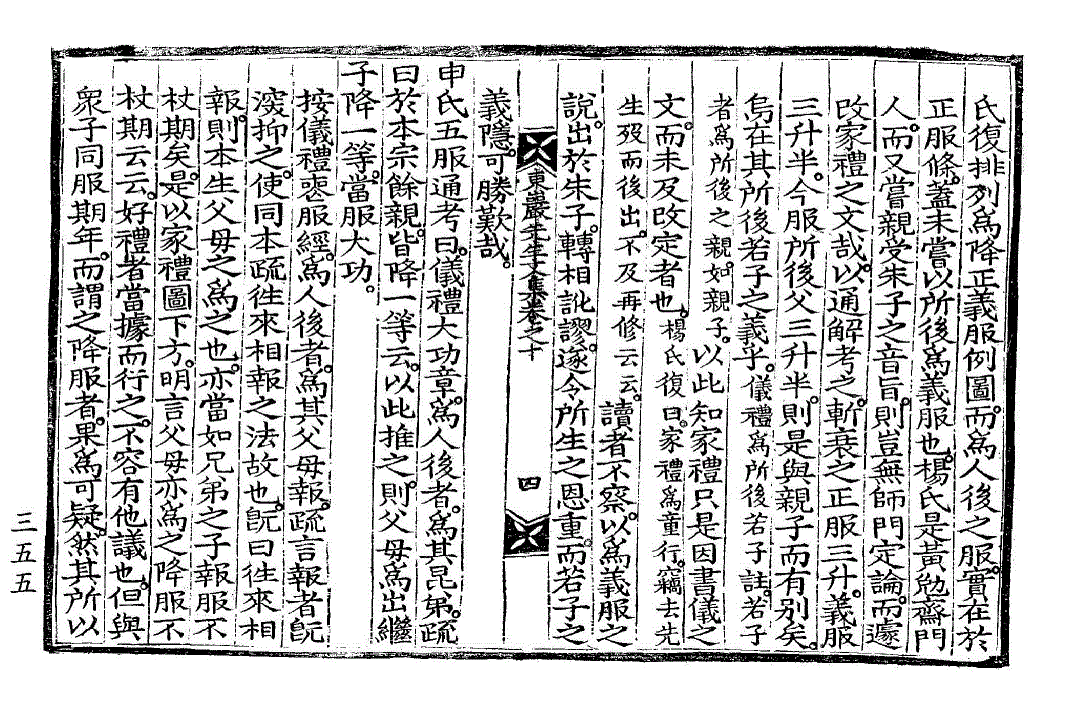 氏复排列为降正义服例图。而为人后之服。实在于正服条。盖未尝以所后为义服也。杨氏是黄勉斋门人。而又尝亲受朱子之音旨。则岂无师门定论。而遽改家礼之文哉。以通解考之。斩衰之正服三升。义服三升半。今服所后父三升半。则是与亲子而有别矣。乌在其所后若子之义乎。(仪礼为所后若子注。若子者为所后之亲。如亲子。)以此知家礼只是因书仪之文。而未及改定者也。(杨氏复曰。家礼为童行。窃去先生殁而后出。不及再修云云。)读者不察。以为义服之说。出于朱子。转相讹谬。遂令所生之恩重。而若子之义隐。可胜叹哉。申氏五服通考曰。仪礼大功章。为人后者。为其昆弟。疏曰于本宗馀亲。皆降一等云。以此推之。则父母为出继子降一等。当服大功。