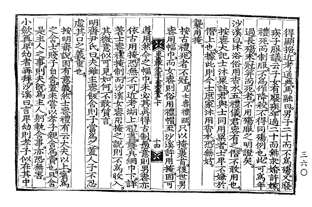 按古礼。死者不冠。(见士丧礼疏。)只以掩裹首。后世男丧用幅巾。而女丧则俗用礼帽。至沙溪许用掩。固可遵用。然今之幅巾。未必其真得古制。愚意则男丧亦依古用掩。恐无不可。近考湖上礼书。袭具网巾下。详著士丧礼掩制。而沙溪女丧用掩之说则不为收入。其微意似可见。如何。不敢质言。