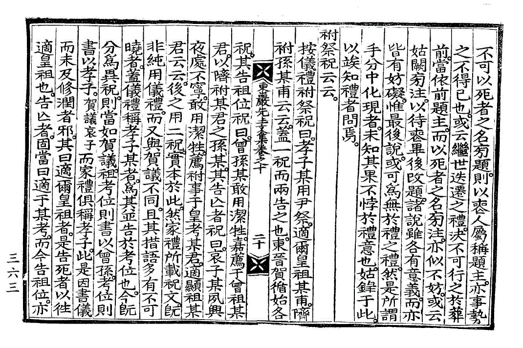 按仪礼祔祭祝曰。孝子某用尹祭。适尔皇祖某甫。隮祔孙某甫云云。盖一祝而两告之也。东晋贺循始各祝。其告祖位祝曰。曾孙某敢用洁牲。嘉荐于曾祖某君。以隮祔某君之孙某。其告亡者祝曰。哀子某夙兴夜处不宁。敢用洁牲。荐祔事于皇考某君。适显祖某君云云。后之用二祝。实本于此。然家礼所载祝文。既非纯用仪礼。而又与贺议不同。且其措语多有不可晓者。盖仪礼称孝子某者。为其并告于考位也。今既分为异祝。则当如贺议。祖考位则书以曾孙。考位则书以孝子。(贺议哀子)而家礼俱称孝子。此是因书仪而未及修润者邪。其曰适尔皇祖者。是告死者以往适皇祖也。告亡者。固当曰适于某考。而今告祖位。亦