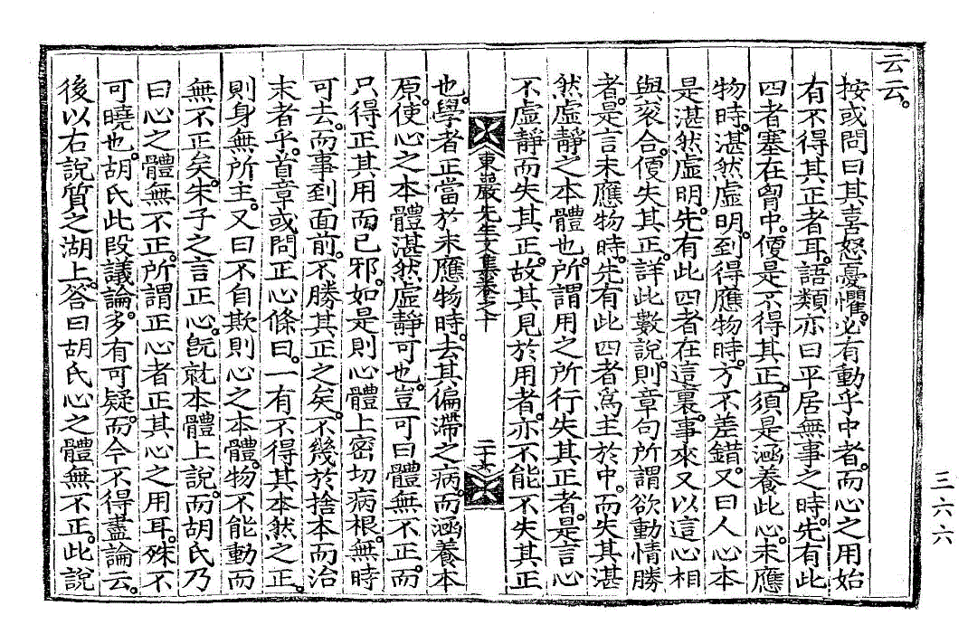 云峰胡氏曰。心之体无不正。所谓正心者。正其心之用