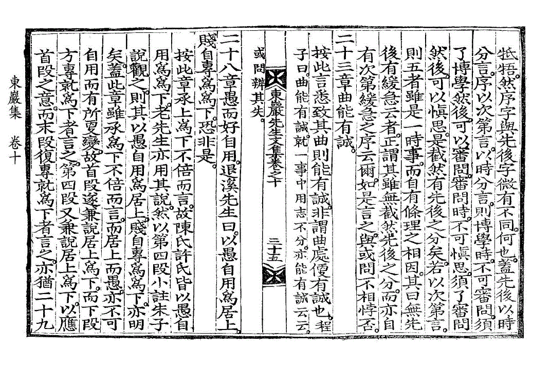 牴牾。然序字与先后字微有不同。何也。盖先后以时分言。序以次第言。以时分言。则博学时。不可审问。须了博学然后。可以审问。审问时。不可慎思。须了审问然后。可以慎思。是截然有先后之分矣。若以次第言。则五者虽是一时事。而自有条理之相因。其曰无先后有缓急云者。正谓其虽无截然先后之分。而亦自有次第缓急之序云尔。如是言之。与或问不相悖否。二十三章曲能有诚。