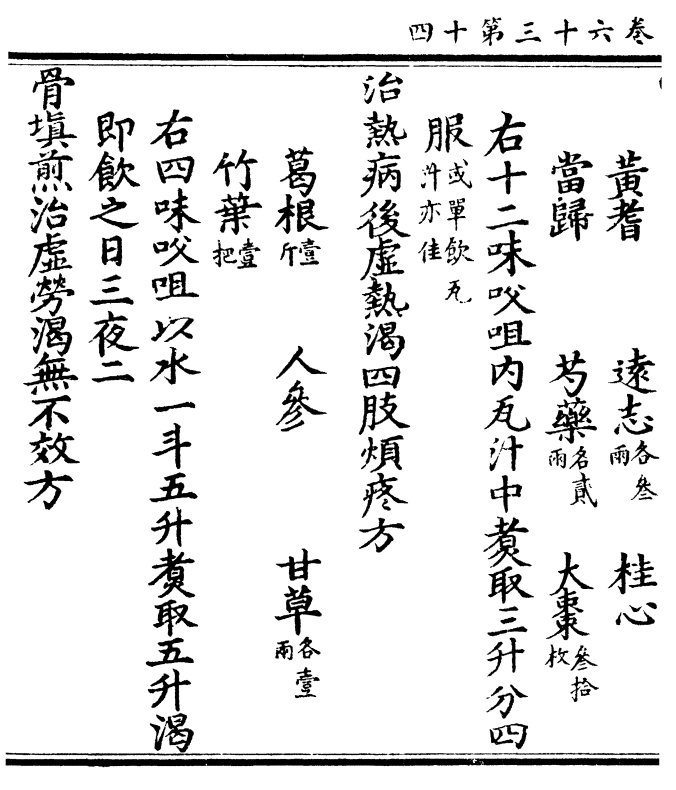 又方栝蒌根 麦门冬 铅丹(各八/分)