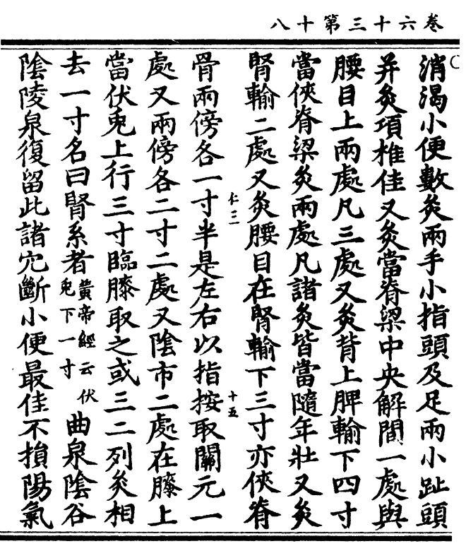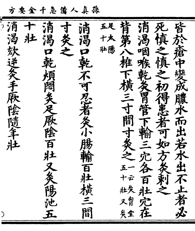 消渴小便数灸两手小指头及足两小趾头并灸项椎佳又灸当脊梁中央解间一处与