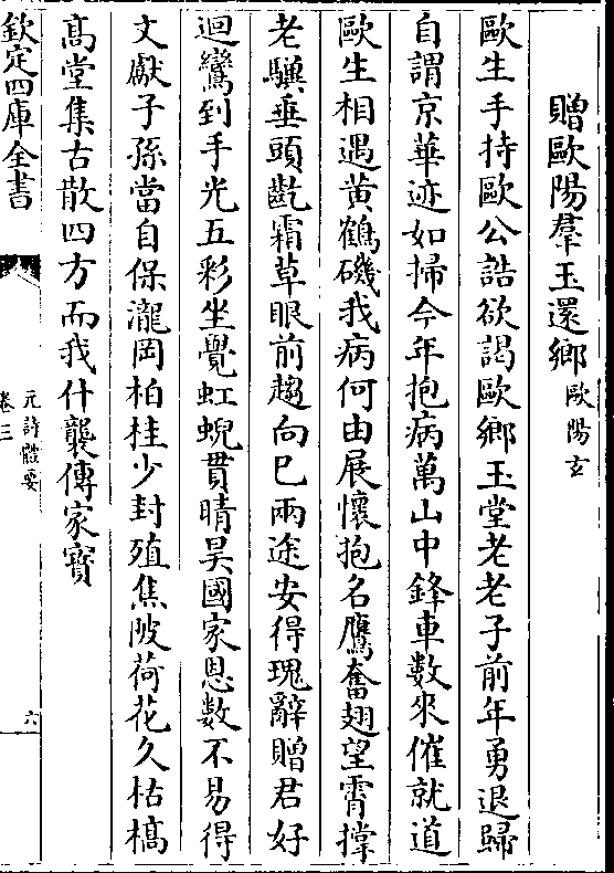 赠欧阳群玉还乡(欧阳玄/)欧生手持欧公诰欲谒欧乡玉堂老老子前年勇退归