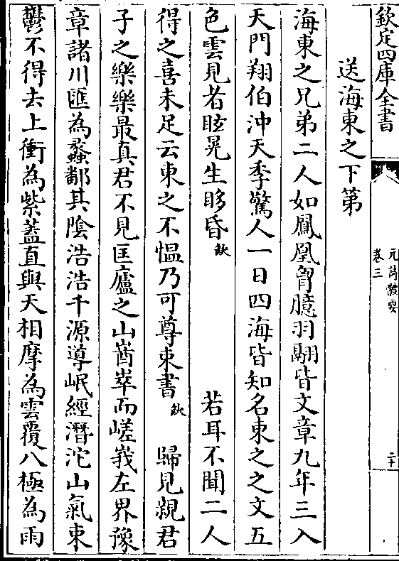 海去便欲毕命依凫鹥一朝唤起作边帅黄河以北儿女皆惊啼载笔九天上判花双禁西夕闱拜青琐金殿