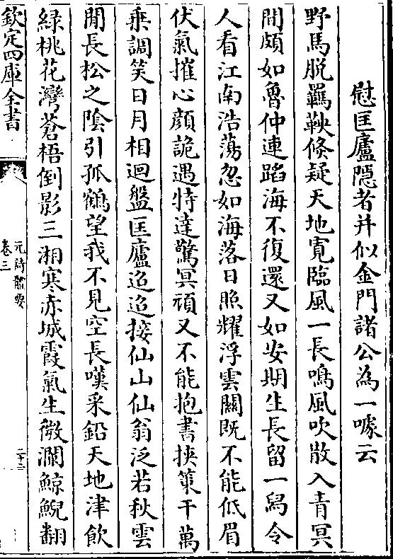 古一公武烈传髦齯皆不如王尚书诗随贾客过南海箭压飞将惊豳蹊但令千岁眉寿无与害世间富贵(缺/)