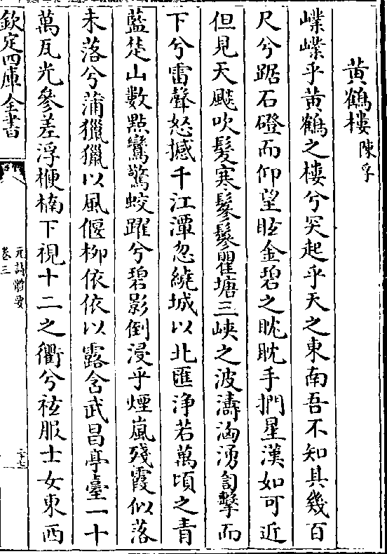 黄鹤楼(陈孚/)嶪嶪乎黄鹤之楼兮突起乎天之东南吾不知其几百