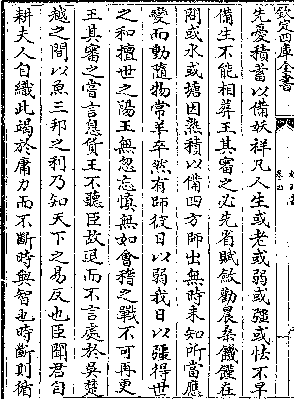 先忧积蓄以备妖祥凡人生或老或弱或彊或怯不早备生不能相葬王其审之必先省赋敛劝农桑饥馑在