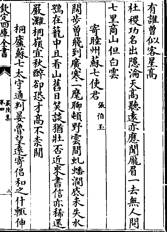 寄睦州苏七使君(张伯玉/)