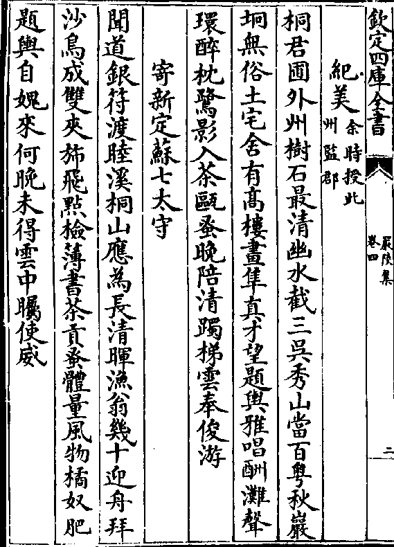 纪美(余时授此/州监郡)桐君圃外州树石最清幽水截三吴秀山当百粤秋岩