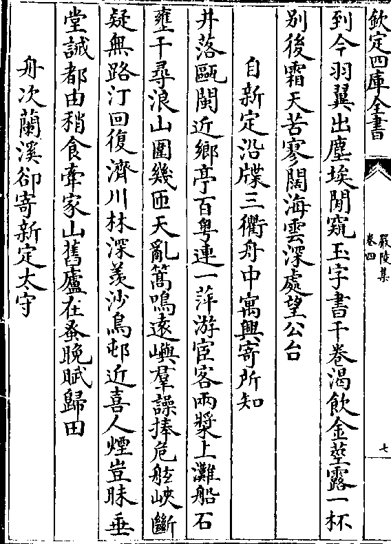 新定与并门天南天北人扁舟江外客别乘塞垣身朔