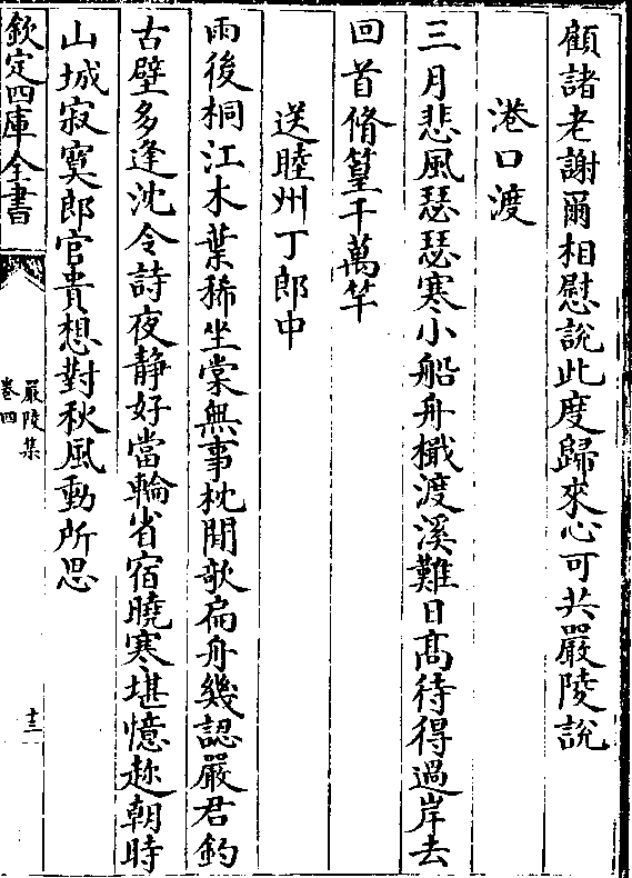 顾诸老谢尔相慰说此度归来心可共严陵说港口渡
